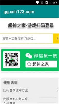 1、打开超神之家扫码App,点击首页“扫码登录”按钮;
