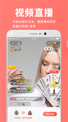 4、互动直播:支持向主播赠送礼物,在线连麦交流。