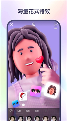 无需化妆也能拍出精致大片,智能美颜+瘦脸磨皮+大眼效果自动优化面容;更有上百款趣味AR表情和动态贴纸,让您秒变萌趣达人。