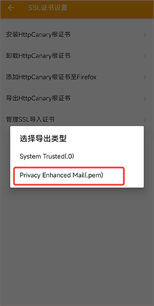 4、 导出类型选择下面这个(。pem)【我这里是未root环境,选择。pem。如果root之后需要更高要求可选.0】