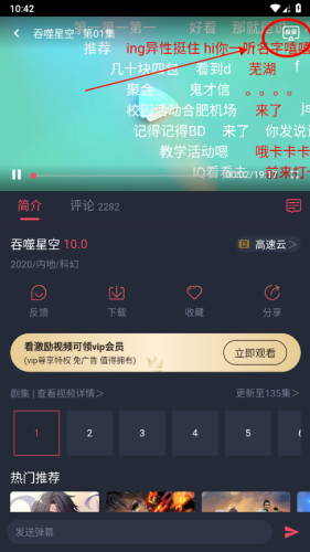 7、播放页面,弹幕是自动开启的,如果不喜欢,可以点击关闭。
