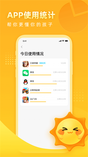 1、软件帮助家长用户管理孩子的日常手机使用频率。