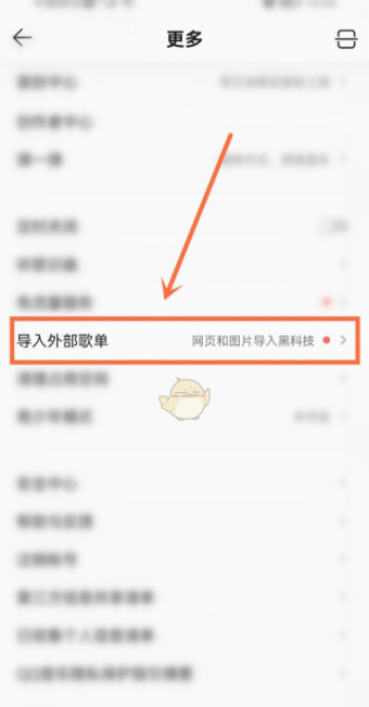 2、在歌单设置中,点击“导入外部歌单”选项。