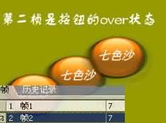 1.打开作好的导航图片,在第一桢做好按钮一般状态图形,在第二桢上,做好按钮over状态图形,如图所示: