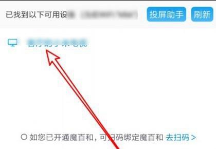 第三步:用户在选择绑定后的界面中,可以看到有【投屏助手】的几个字样,这里会自动通过无线网来寻找设备,如果你的电视也有无线功能,就可以在软件里被找到
