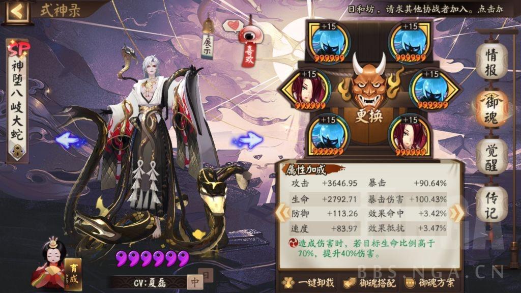 伤魂鸟攻生攻,防御两件套,堆攻击,主要用来破雪女盾,速度不建议太快,放慢的话多数情况下可以在起飞后第二回合卡在对方sp花回合后。