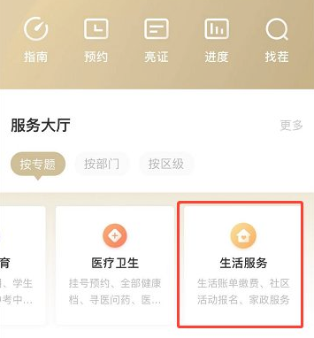 步骤二:在进入办事大厅之后,在服务大厅的位置点击生活服务选项就可以进行相关的账单缴费或是社区报名活动了,当然除了这些,该服务中还有更多超值功能等着你体验。