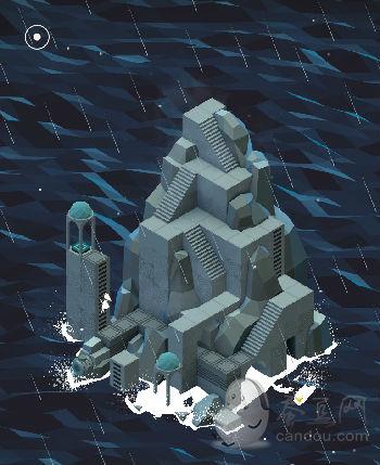 打开右下按钮,进入最后一个空间,这时是没有主人公的,滑动右侧长块,使乌鸦到达按钮处,第四个灯塔亮。