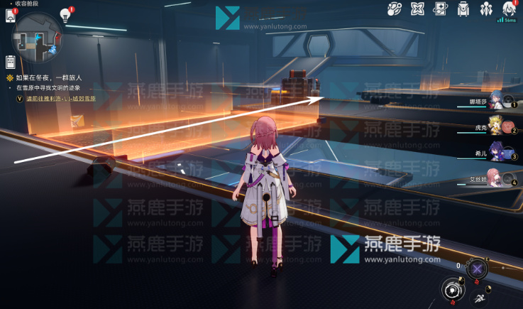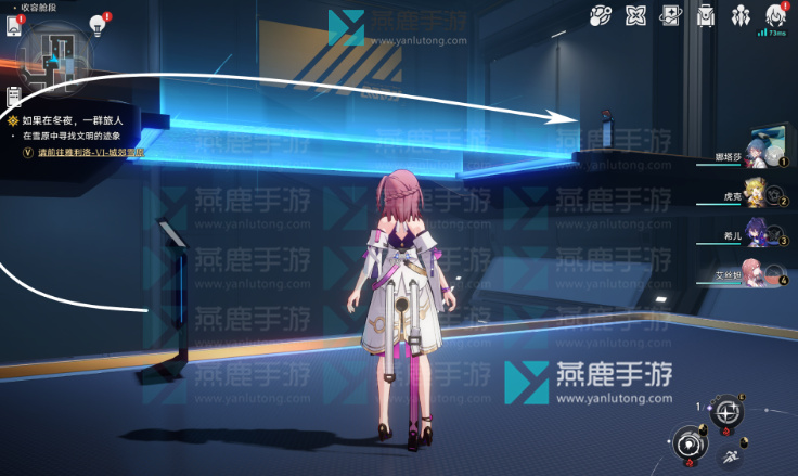 9、来到收容舱段,从左手边向下走,启动机关,出现蓝色道路。