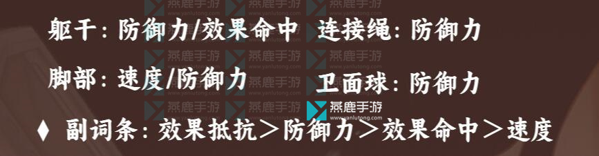 副词条:效果抵抗>防御力>效果命中>速度