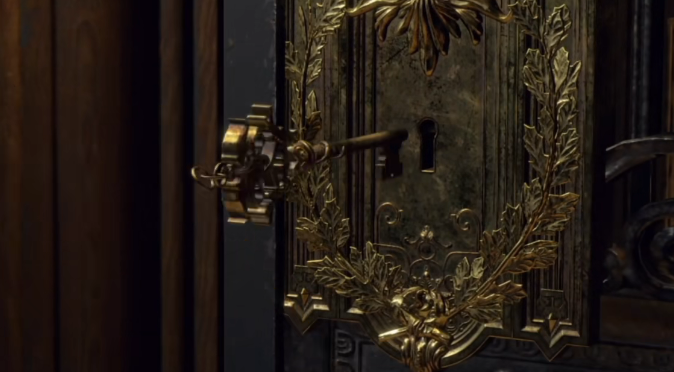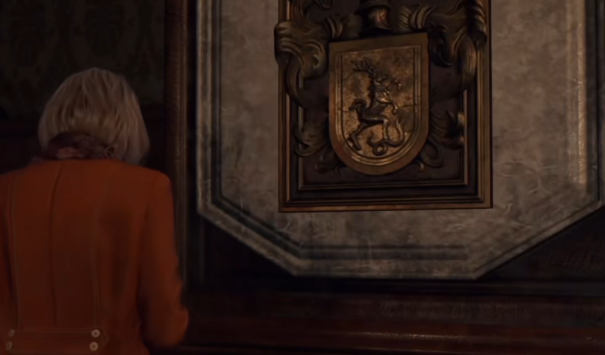 8、走到最上方的雕像处,进入二楼左边的门到达饭厅,坐在这里按铃声即可获得蛇头雕像。