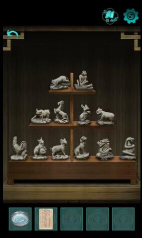 1、首先玩家可以看到一个三层的格子,每一层都有不同的生肖雕像。