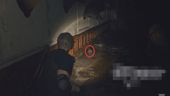 3、最后在阿什莉将里昂救出来后,在第十章的笼子中出来后,前往图书馆的路上,如图所示位置可以看到一只老鼠,将其击杀。