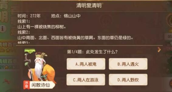 梦幻西游最近上线了全新的清明节活动,玩家可以参与清明百事录进行探索,在序章环节玩家需要回答四个问题,回答问题可以获得不错的游戏奖励,但是有很多的玩家想要知道问题的答案,那么下面就为大家分享梦幻西游手游清明百事录答案,感兴趣的小伙伴快来看看吧。
