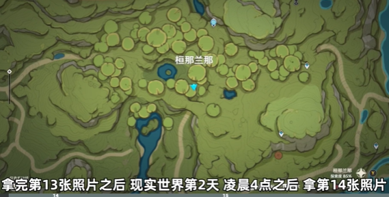 以上就是小编为大家带来的原神神秘的剪贴簿第14在哪的图文攻略,其实只要在拿完13张照片后等待一天刷新就可以去拿第14张照片了,调查恒那兰那附近的小房子就可以获得,还没获得的小伙伴快去试试吧!