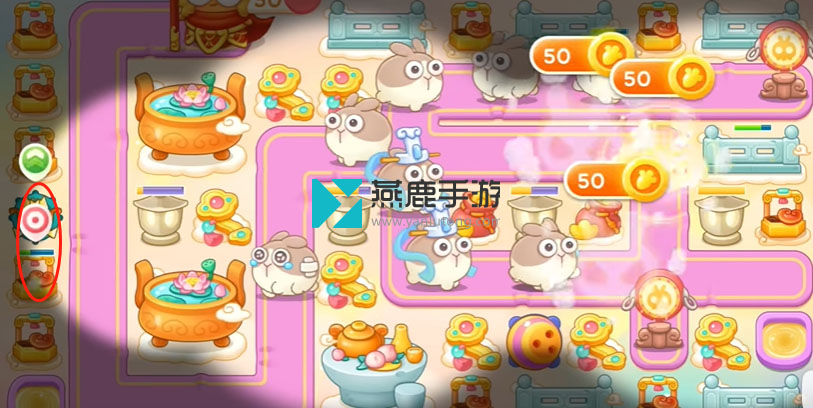 3、第一波留一只兔子,打如意,如意打掉,建立一个保龄球打左边如意。