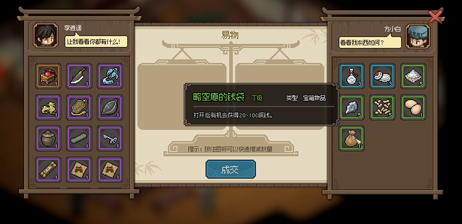 7、略空瘪的钱袋。打开后有机会获得20~100铜钱。