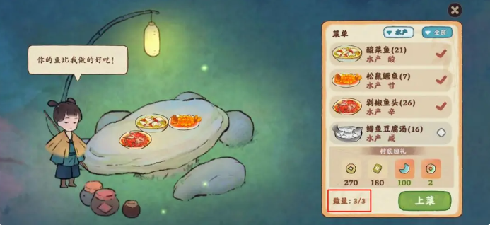 1、邀请村民一起共进晚餐可以增加好感度,最多可以选择三样对方爱吃的菜品,记得多装备一些。