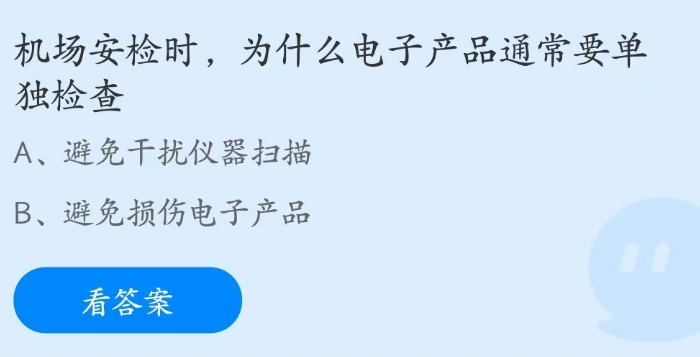 2023年2月8日的蚂蚁庄园小课堂其中一个问题是:机场安检为什么电子产品要单独检查?大家可能会不太了解这个问题的答案,那么这个问题的答案究竟是什么呢?现在就为大家提供了答案,一起来看看吧。
