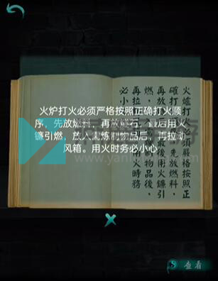 2、药房墙上的物品上有线索,根据这个线索调整厨房里的羊角,获得【火镰】。