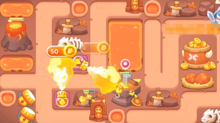 2、左中在建立一个手电筒,清理上面障碍物,清理之后在建立手电筒,直接打火山,火山喷发会影响我们建立塔防。
