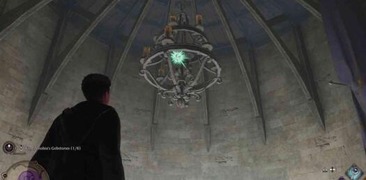 1、来到占卜教室,找到枝形吊灯,在枝形吊灯上可以使用Accio得到第二个高布石。