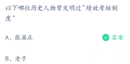 2023年2月7日的蚂蚁庄园小课堂其中一个问题是:以下哪位历史人物曾发明过“绩效考核制度”?大家可能会不太了解这个问题的答案,那么这个问题的答案究竟是什么呢?现在就为大家提供了答案,一起来看看吧。