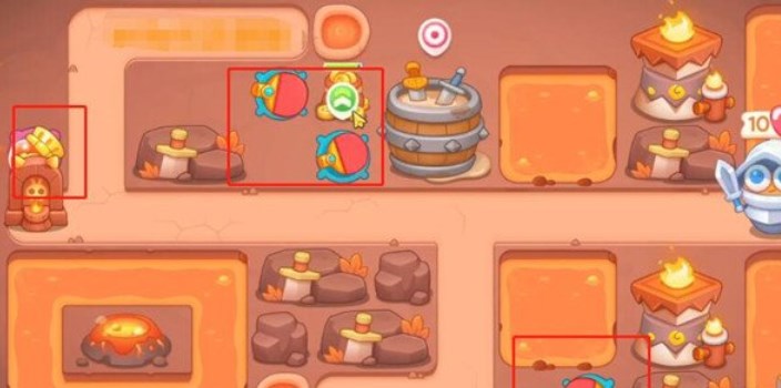 6、第六波。道具全清,左侧1火焰塔,1球拍。