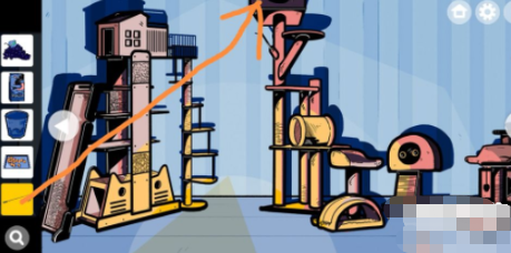 1、进入游戏后将猫粮倒到右边地上的猫盆里面。