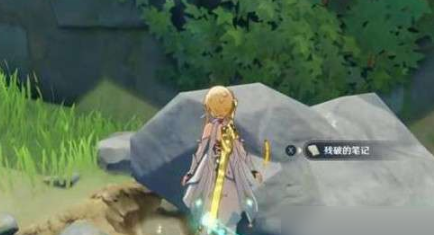 2、再前往日冕旁边的石头,我们使用元素视野找到可以打碎的石头将其打碎找到笔记。