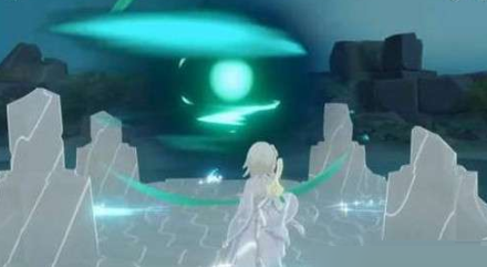 5、最后所有的黑球击破后就会出现绿色的球,我们使用元素视野才能看到它,继续使用风元素攻击它。