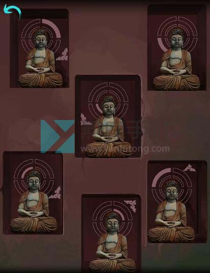 17、回到佛头,按照如图方法照亮每一个佛像,打开鼓仙手上的适合获得【阵法残页】。