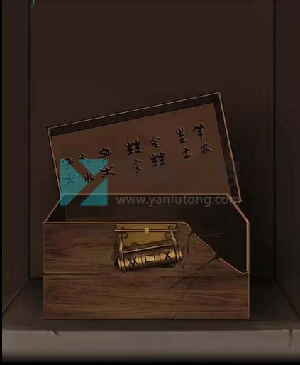 8、左侧的破盒子是线索,右侧的盒子顶上可以得到这样的线索,得到如图的图案打开盒子的锁,得到【供香】和【圆形佛头饰品】。