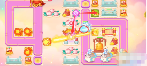 4、前方魔法球附近障碍物清理,放置回旋镖,这一关有冰冻兔,要小心,注意解冻。
