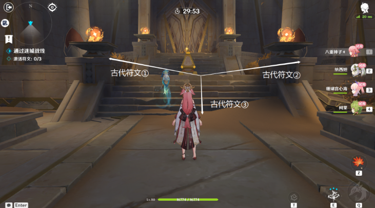 4、进入挑战后,可以前往不同的方向激活古代符文,一共有3个。