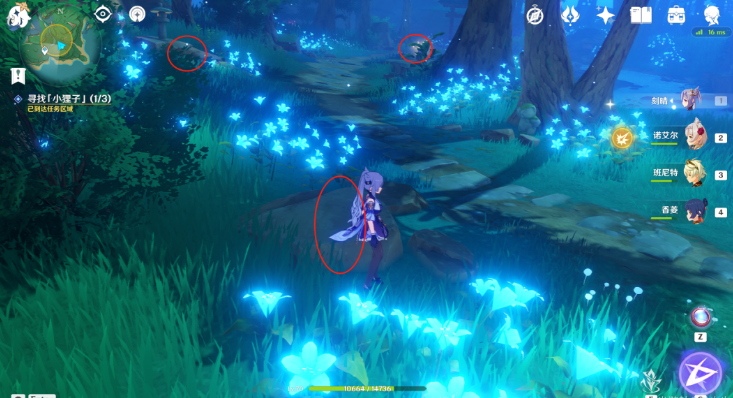 7、原路返回,沿石板路走回镇守之森锚点,寻找[小狸子]。
