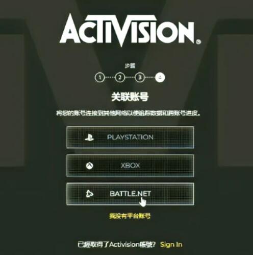1、首先进入链接,然后点击右下角开始建立动视的账号。