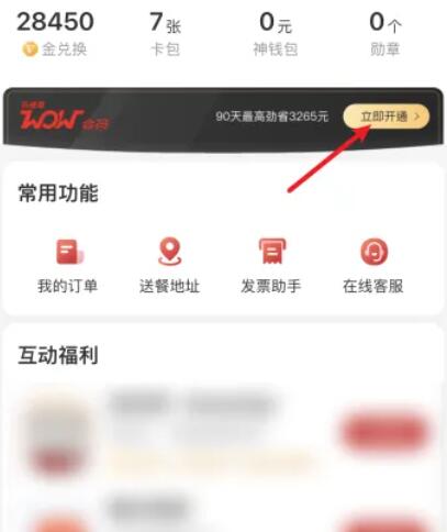 1、进入肯德基软件之后进入我的选项当中,找到WOW会员然后点击立即开通。