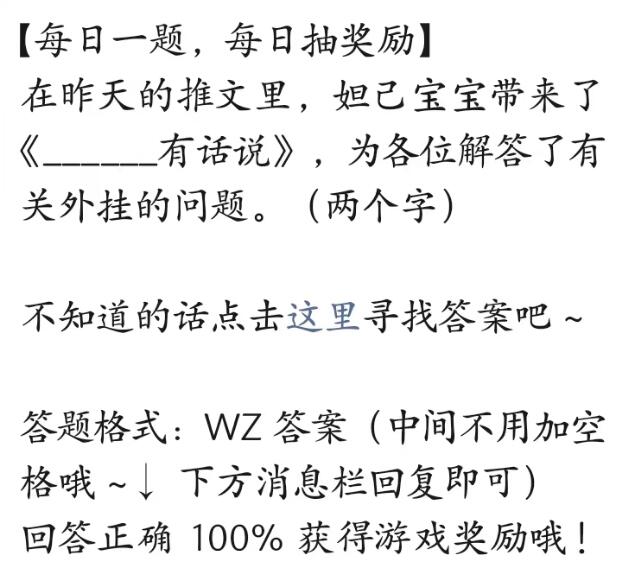 王者荣耀6月29日「每日一题,每日抽奖励」的问题是:在昨天的推文里,妲己宝宝带来了《有话说》?相信很多小伙伴都不知道问题的答案,接下来小编就给大家带来了6月29日王者荣耀每日一题的答案。