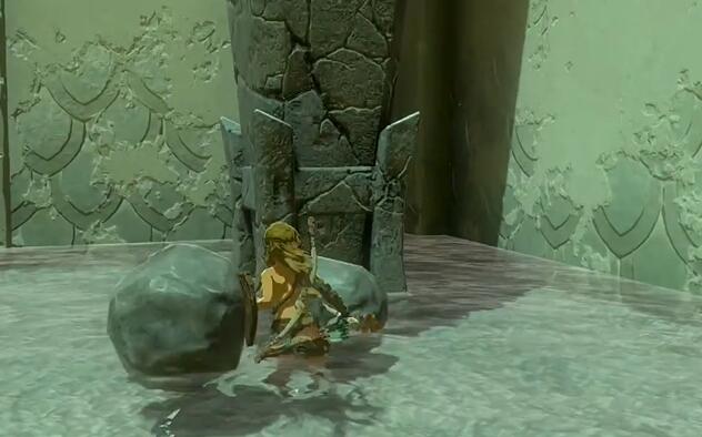 2、拿起旁边的石头可以将前方的石门砸开。