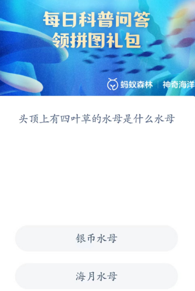 2023年神奇海洋科普问答4月20日的问题是:头顶上有四叶草的水母是什么水母?有的小伙伴可能不知道问题的答案,那么下面小编就为大家带来了神奇海洋科普问答4月20日的正确答案,来看看问题答案是什么吧。