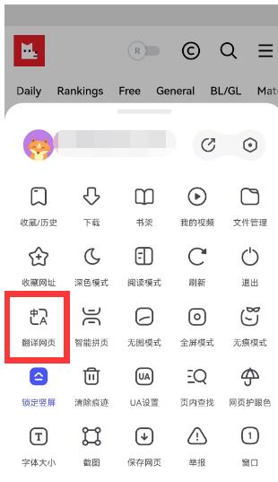 2、接着点击网页底部的“三”,在出现的设置界面中找到网页翻译。然后在设置选项中,找到网页翻译。
