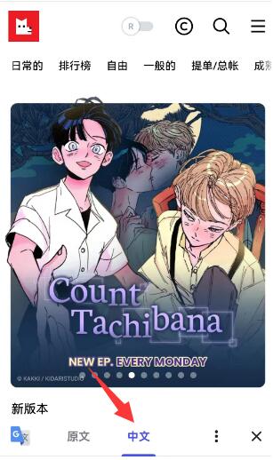 注意:当前lezhin客户端只能支持韩、日、英文,无法设置成中文,只有网页版本的lezhin可以切换成中文。