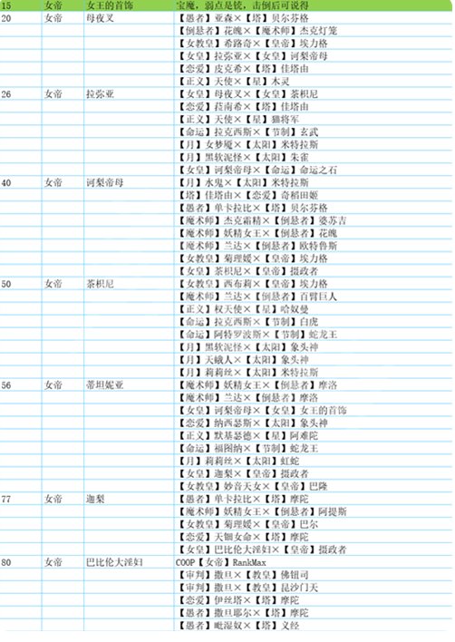 ·恋愛Lv2・皮克希×死神Lv28・毕舍遮×女帝Lv40・诃梨帝母