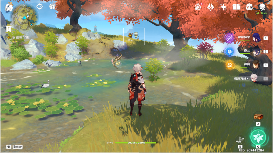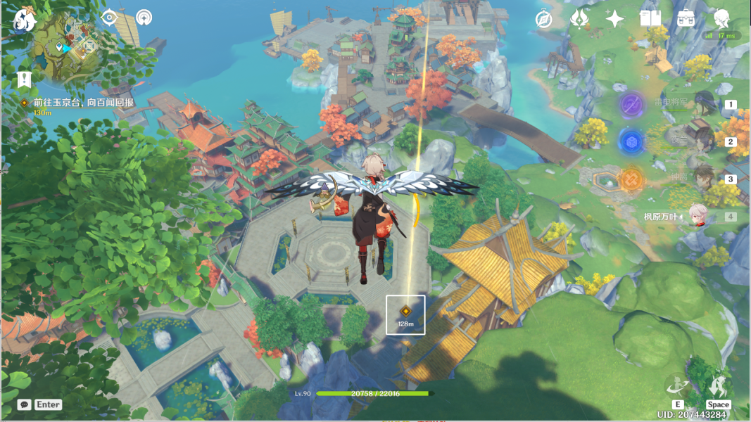 3、传送璃月港上方锚点,往地图的西南方向飞。