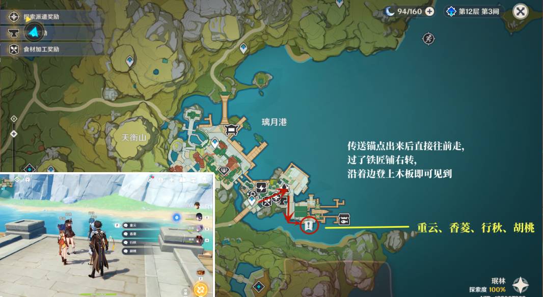 10、传送图中璃月港锚点,往地图的东北方,向下飞。