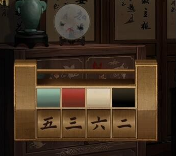 7、在柜子上有一把锁,点击后四个颜色所对应的数字分别为五三六二。