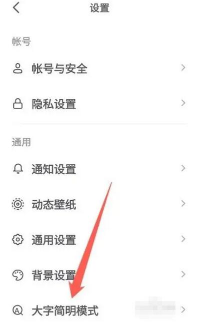 2、然后在打开的设置界面中的下面找到“大字简明模式”选项并点击打开。