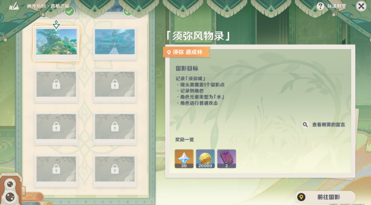 1、查看留影地点,需要前往须弥拍摄赤王陵。