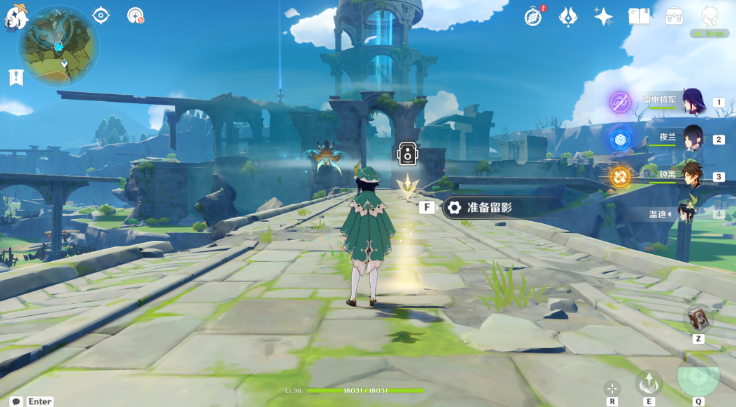 9、装备留影机后,切换蒙德角色,准备拍摄。
